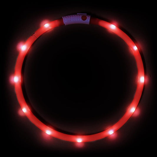 Led Dog Collar, USB Rechargeable LED Dog Necklace Light, Silicone Light up Dog Collars Glow in the Dark (Red-Silicone)